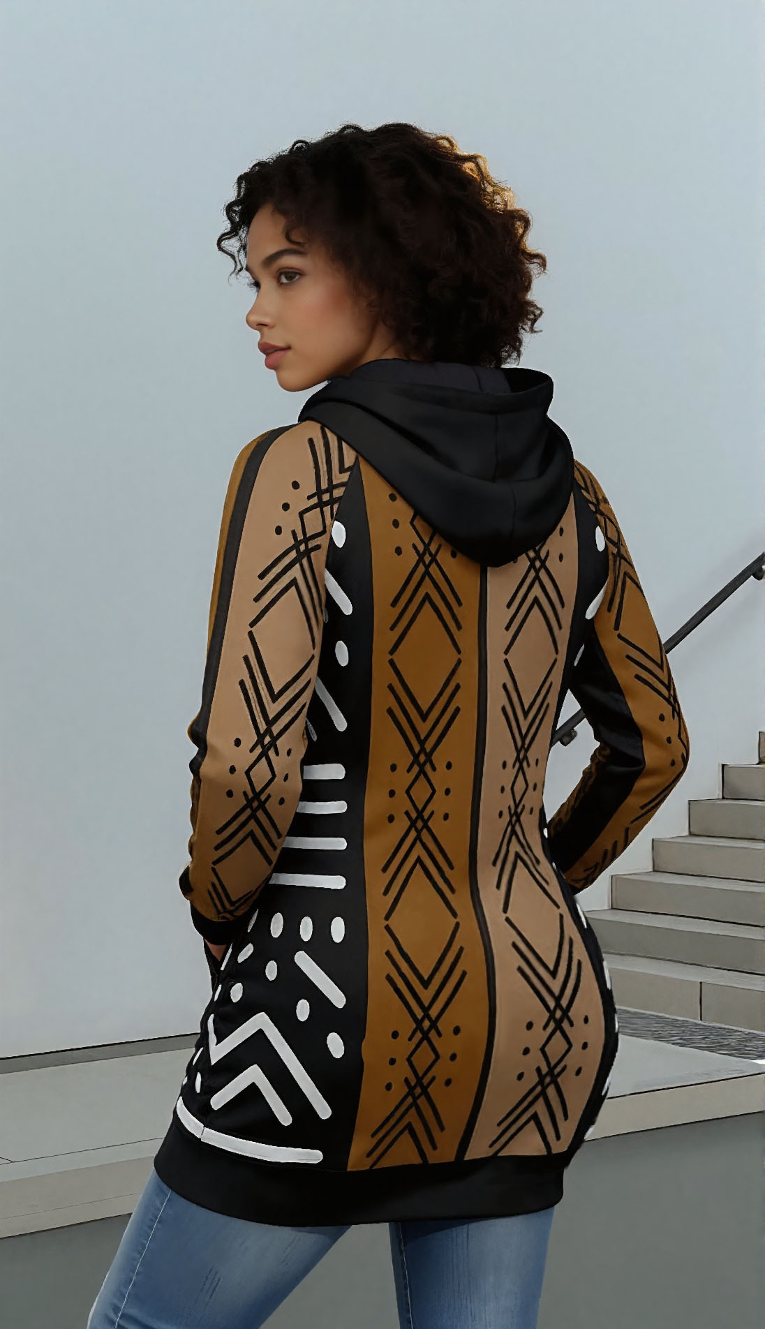 This beautiful hoodie features the traditional African mud cloth pattern, also known as bogolan, that has been celebrated for centuries. The rich brown and cream geometric designs create a striking visual that connects you to African heritage and culture. Each pattern tells a story of tradition and craftsmanship, making this hoodie more than just clothing – it's a meaningful piece that reflects your appreciation for diverse cultures. The authentic-looking print brings together modern fashion with timeless African artistry.